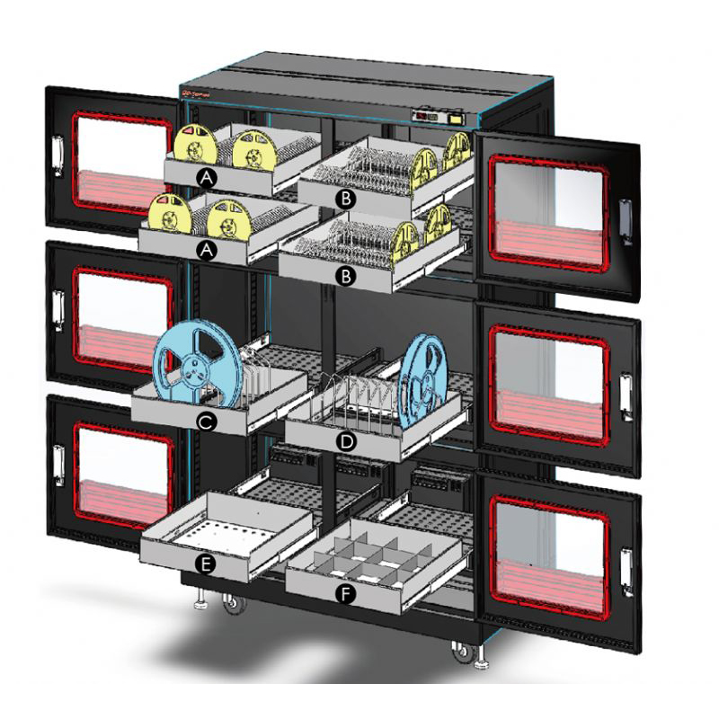 Suitable for use in production lines, warehouses, R&D units, or laboratory departments, the Dr. Storage IoT Dry Cabinet combines exceptional humidity control with advanced network connectivity and practical internal lighting. It is a reliable choice for protecting valuable, moisture-sensitive components and materials, and helps users comply with J-STD-033D standards.